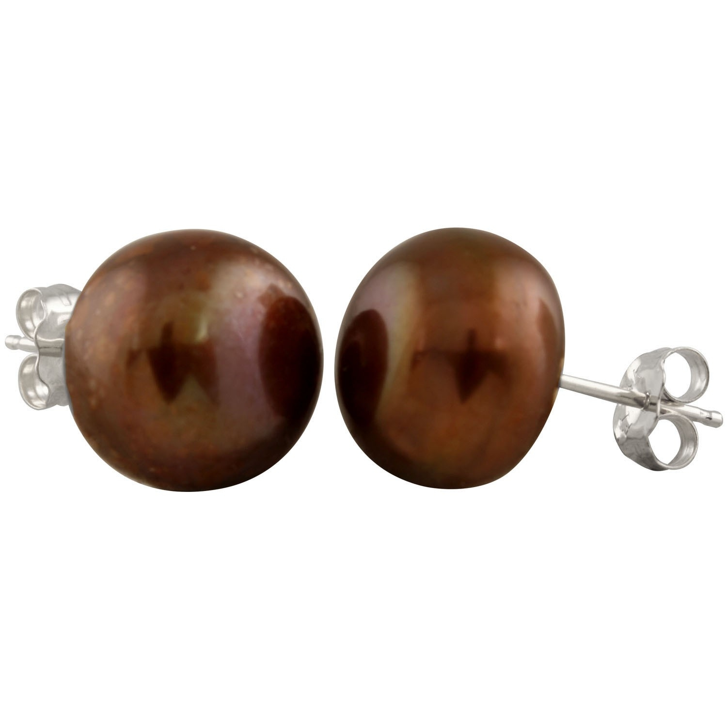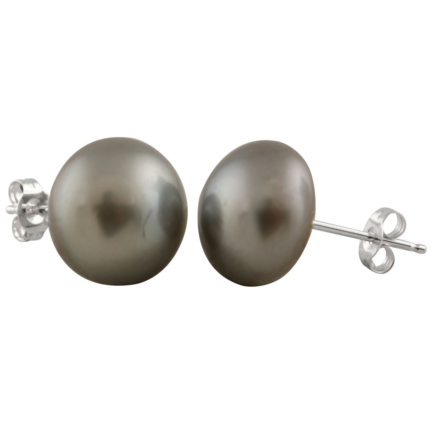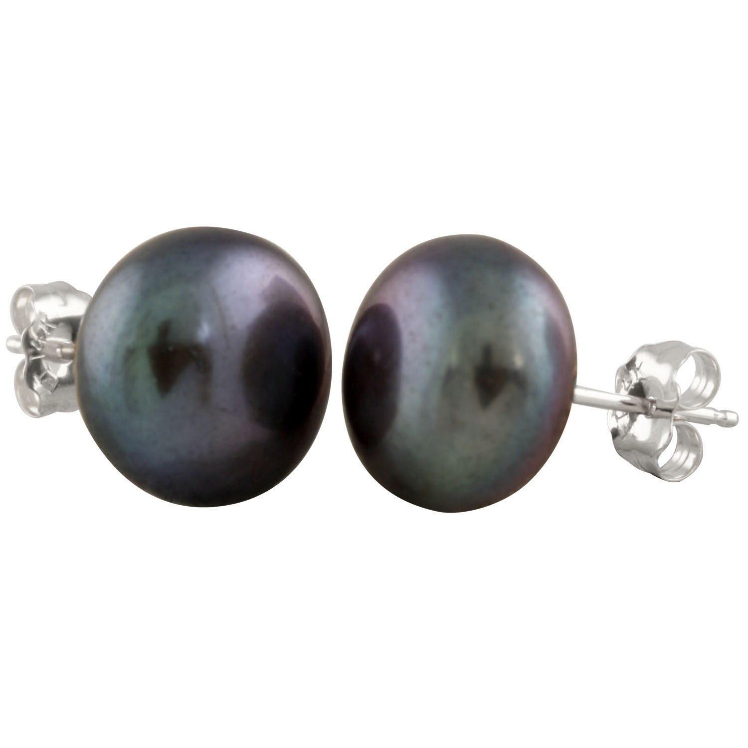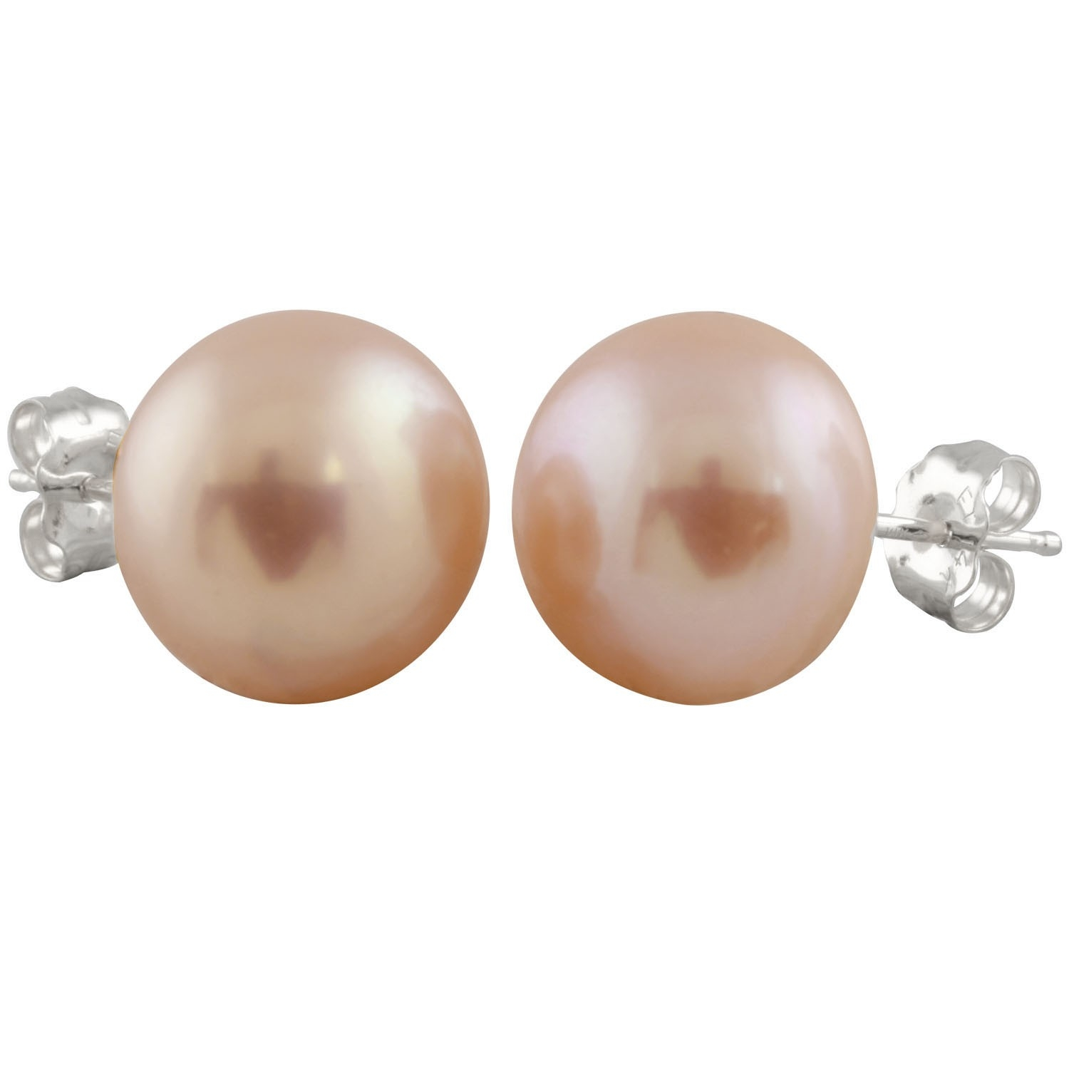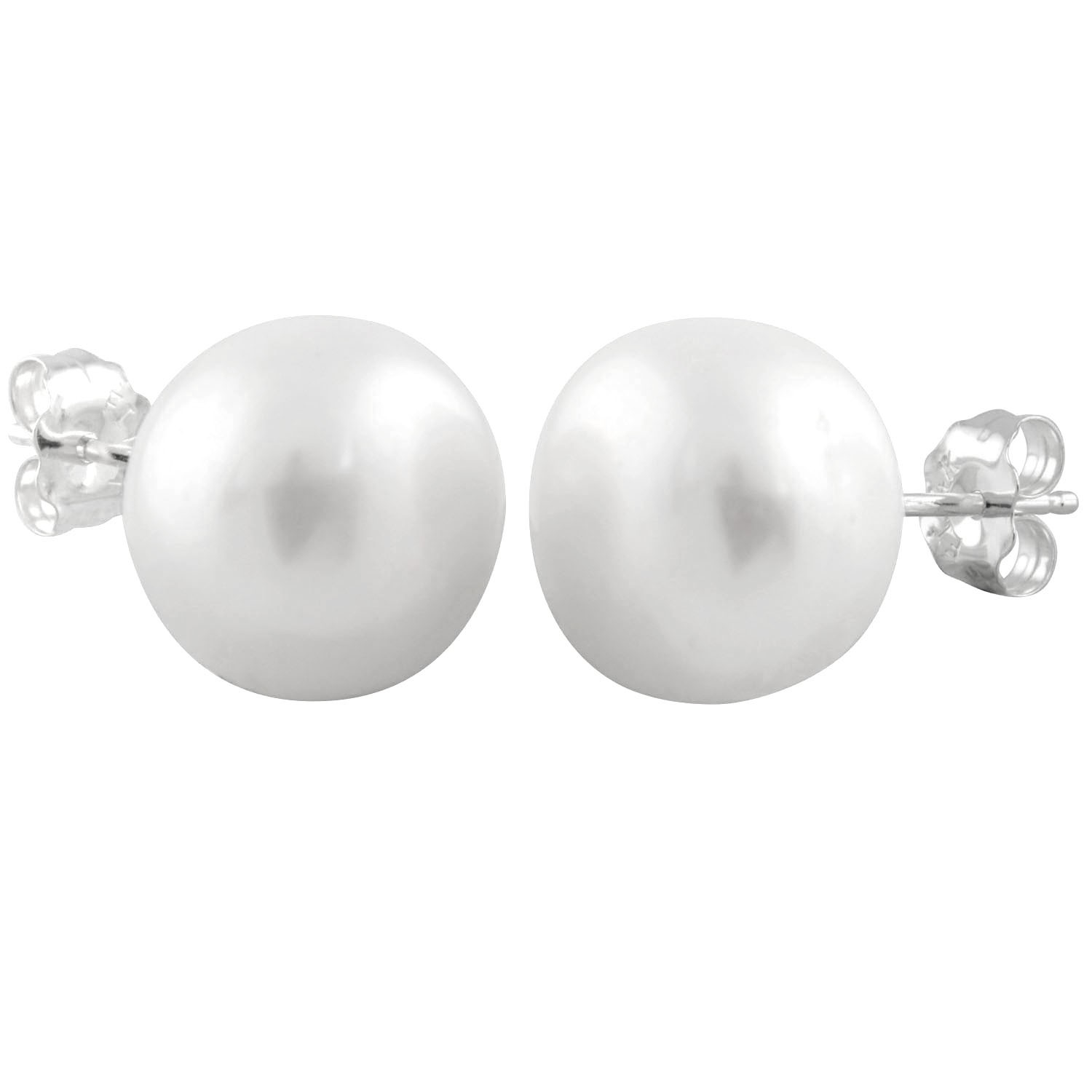 Freshwater button pearl studs, 10-10.5 mm, 14k white gold